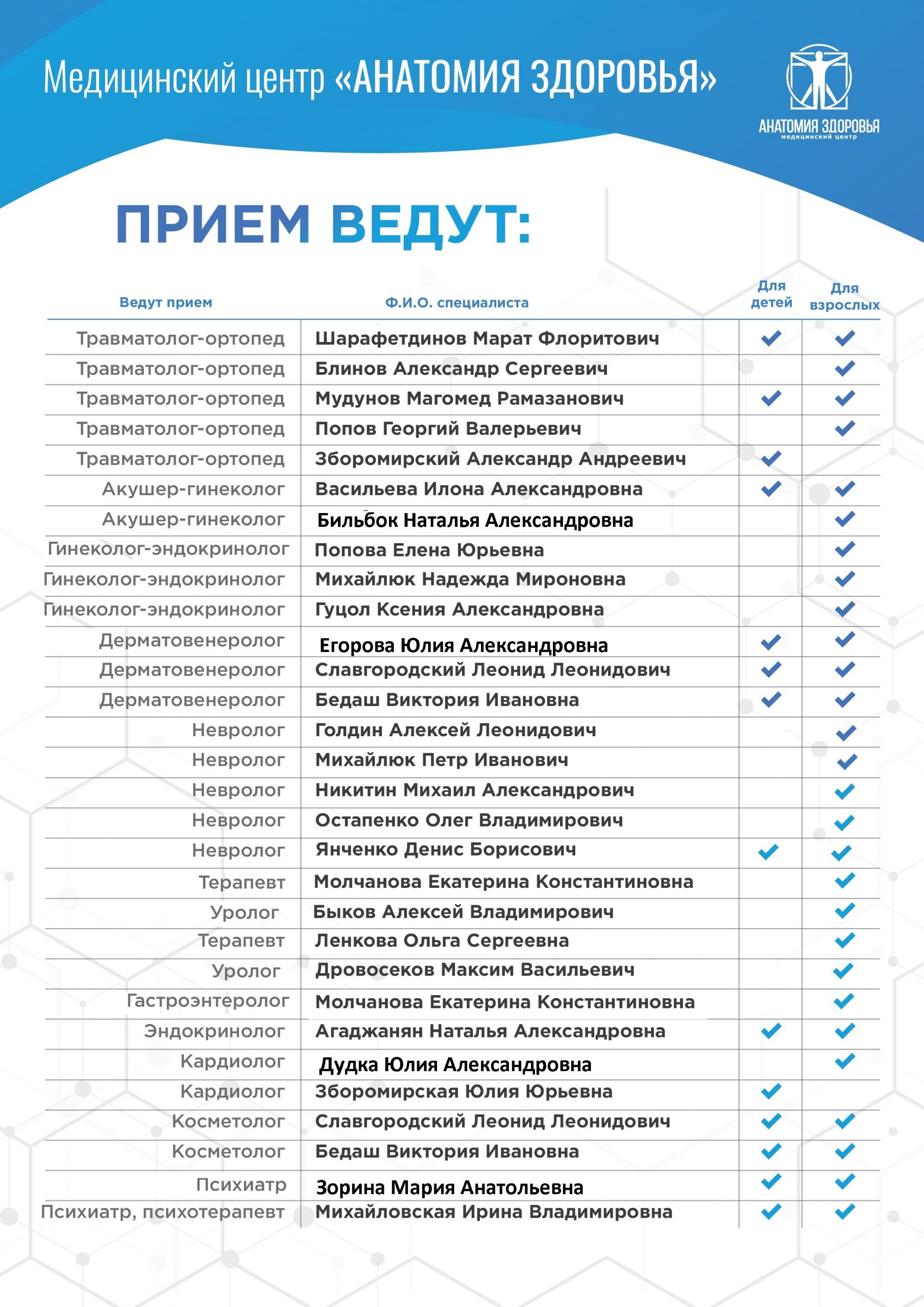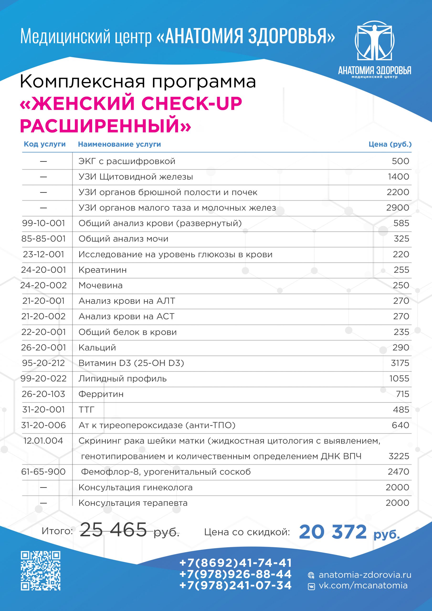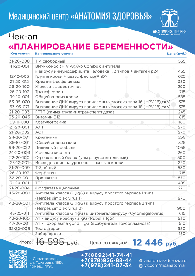 Прайс лист услуг медицинского центра